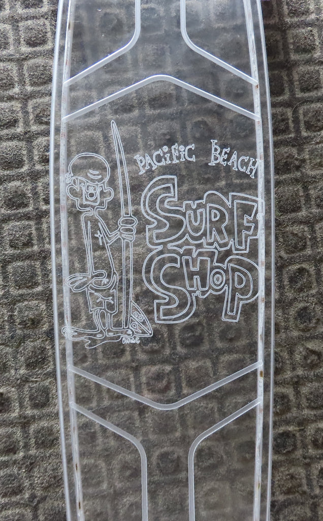 30" Platypus shaped Ghostboard. Complete clear acrylic skateboard with an LED light strip embedded around the edge. It features our Original Logo laser engraved into the bottom. Comes with downhill trucks and light up wheels. The LED lights are controlled by a remote and has multiple colors and display modes.