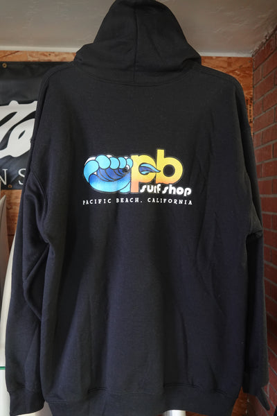 Zip-up hoodie featuring our 70's wave logo on the back.